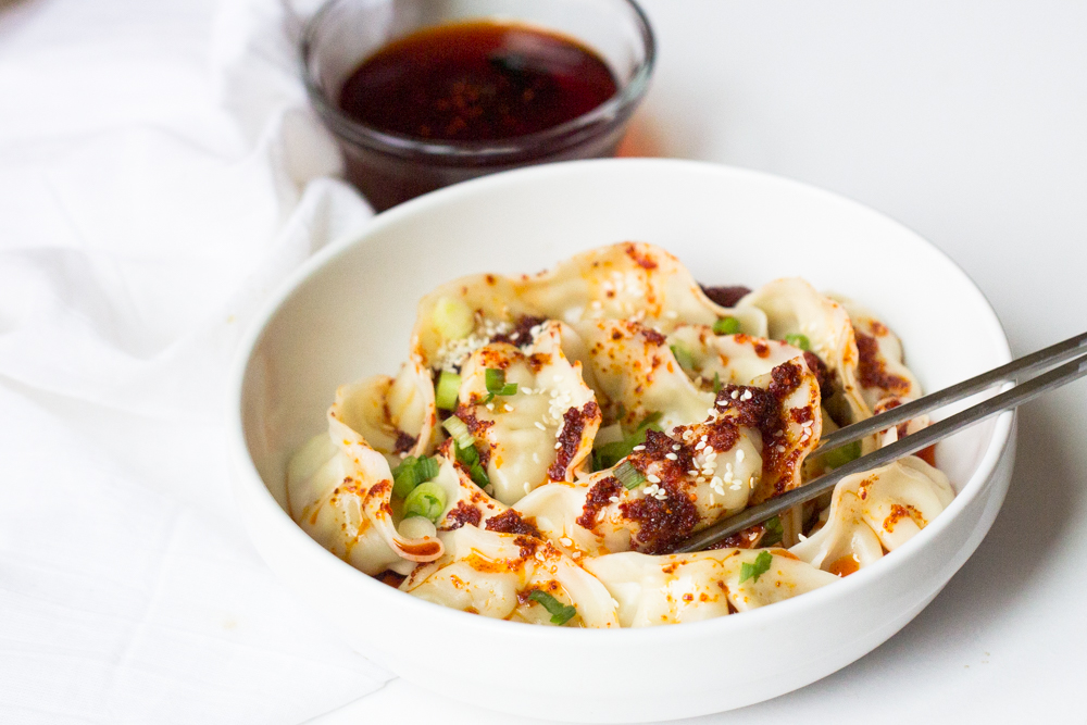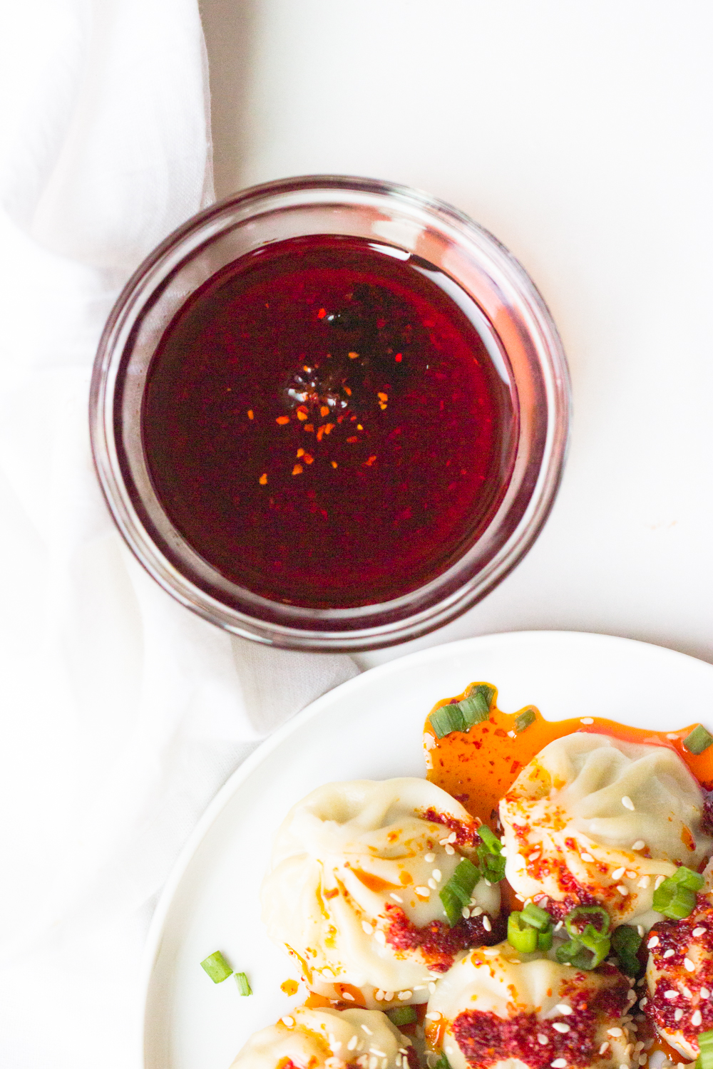 So, let’s focus on the awesomeness that is Fall weather: oversized hoodies, hot cocoa and pumpkin spice lattes, and something comforting to end each day with. This chili oil is a good one to keep at home for cooler evenings that need to be spiced up. It is so easy to make and is the perfect pair for store-bought (or homemade if you have some time) dumplings or tuna potstickers. If you do decide that you want to make them from scratch and learn how to fold them, you can watch this video.